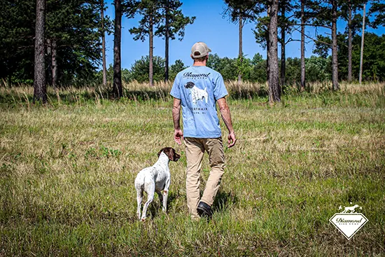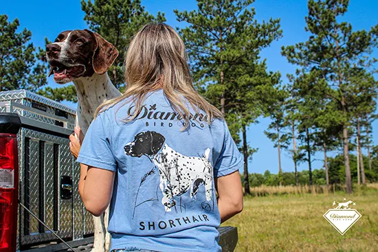 Sport your Auburn spirit with this Diamond Bird Dogs Comfort Colors® 100% cotton tee, featuring a dynamic brown and white illustration of a German Shorthair Pointer in the field. Crafted for comfort and durability, this design pays homage to the storied hunting tradition of the breed and is ideal for outdoor activities, hunting trips, training sessions or everyday wear for the devoted sportsman and sporting dog enthusiast.
